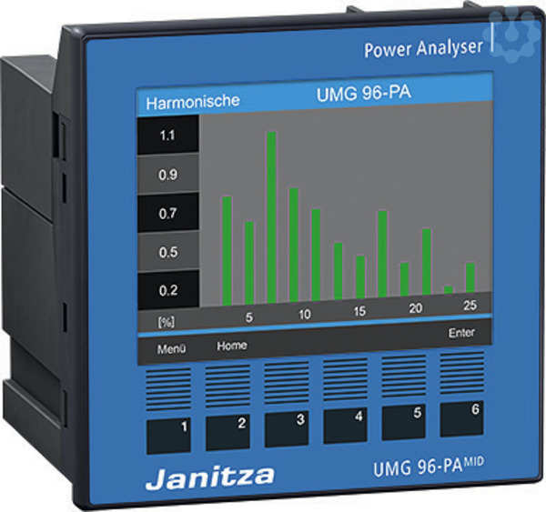 Energiemessgerät UMG 96-PA MIDMID zertifiziertmit Uhr, Batterie und Messdatenspeicher (4MB)Fronttafeleinbaugerät, 96 x 96 x 86 mm (BxHxT) Versorgungsspannung: 90 V - 277 V (50/60) Hz oder 90 V - 250 V DCInstallationskategorie: 300 V CAT IIIMessung in TN- und TT-NetzenMessung von Oberschwingungen bis zur 40.Wirkarbeit Klasse 0,2SGeprüft nach EN 50470-1, EN 50470-3, CLC TR 50579Eingangsspannungsbereich: