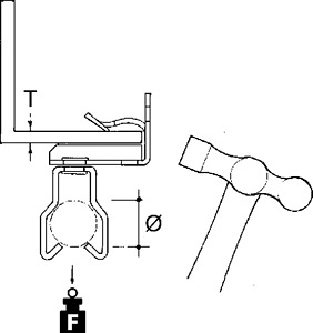 E-Klips, Universal-Flanschkralle mit Rohrclip, zum Aufschlagen mit dem Hammer auf verschiedenste Trägerflansche, Rohrclip an Flanschkralle drehbar, für Rohrabhängung.