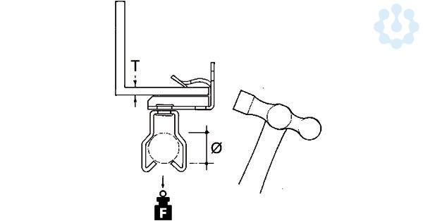 E-Klips, Universal-Flanschkralle mit Rohrclip, zum Aufschlagen mit dem Hammer auf verschiedenste Trägerflansche, Rohrclip an Flanschkralle drehbar, für Rohrabhängung.