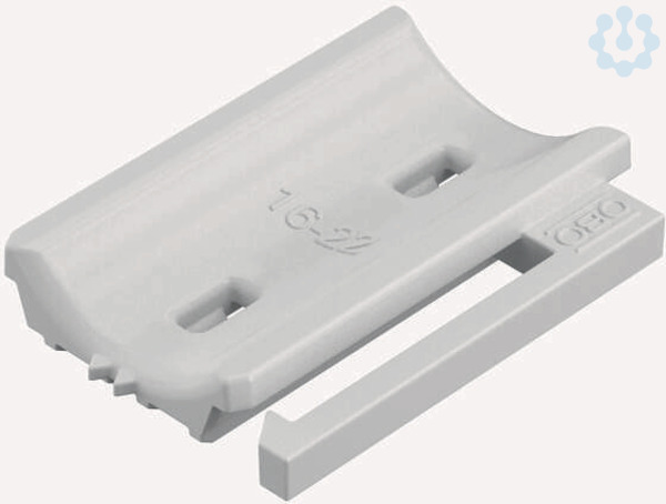 Unabhängig von der Schiene, universell einsetzbar durch Aufschieben auf einen Schenkel der Bügelschelle. Durch eine intelligente Kontur auf der Rückseite, kombinierbar zur Doppelwanne. Nachträgliche Installation ohne Demontage der Bügelschelle möglich.