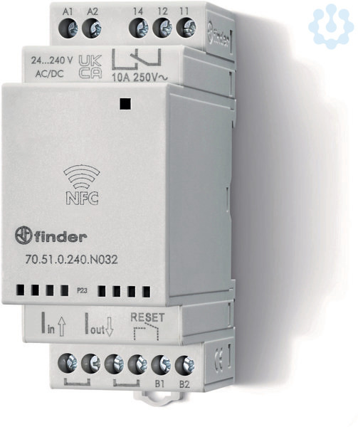 Universal-Stromüberwachung, Multifunktion, für Tragschiene 35 mm, 1 Wechsler für 10 A / 250 V AC, Kontaktmaterial AgSnO2, 35 mm breit, AC/DC-Stromüberwachung einstellbar, AC 50/60 Hz (0.05...16) A, über Wandler bis 600 A, DC (0.05...10) A, Hysterese 5...50% (1...99% Strombereichsüberwachung), Ein-Ausschaltverzögerungszeit (0.1...30) s, Einschaltsperrzeit (0.1...40) s, Versorgungsspannung 24...240 V AC/DC, Memory-Funktion wählbar, LED-Statusanzeige, Schutzart: IP 20, programmierbar mit Smartphone über NFC