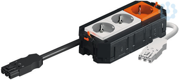 Der anschlussfertige Universalträger UTC3 verfügt über 2 vorinstallierte 33°-Schutzkontaktsteckdosen in weiß mit 16 A und eine vorinstallierte 33°-Schutzkontaktsteckdosen in orange mit 16 A. Passend zu den Verbindungsleitungen VL und den Geräteeinbaueinheiten der Nenngröße 2, 4, R4 und R7. PVC-Anschlussleitung mit Stecker, 3-polig, Typ WINSTA MIDI.