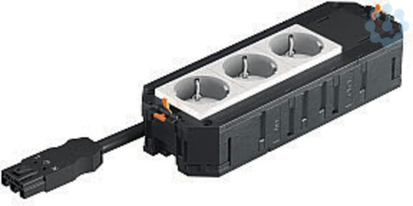 Der anschlussfertige Universalträger UTC4 verfügt über 3 vorinstallierte 33°-Schutzkontaktsteckdosen in weiß und eine Blindabdeckung für den nachträglichen Einbau von einem Installationsgerät der Modul45. PVC-Anschlussleitung mit Stecker, 3-polig, Typ WINSTA MIDI