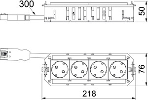 Der anschlussfertige Universalträger UTC4 verfügt über 4 vorinstallierte 33°-Schutzkontaktsteckdosen in weiß, 250 V~ 16 A. Passend zu den Verbindungsleitungen VL und den Geräteeinbaueinheiten der Nenngröße R7, R9 und 9. PVC-Anschlussleitung mit Stecker, 3-polig, Typ WINSTA MIDI.