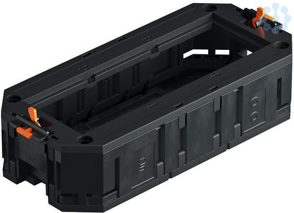 Universalträger UT3 mit 2 Zugentlastungen, Trennwand und Abdeckplatte für den Einbau von bis zu 2 Standard- oder bis zu 3 Modul 45-Installationsgeräte.
