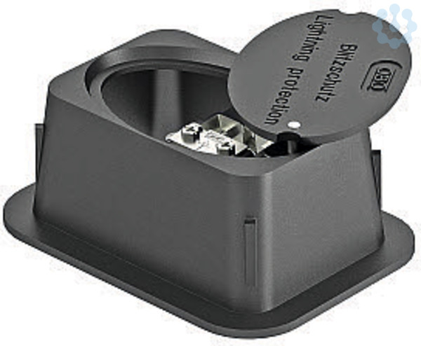 Unterflur-Trennstellenkasten mit eingebauter Trennestelle aus V2A für Rundleiter Rd 8-10 und Flachleiter bis FL40 zur unterirdischen Verbindung von Ableitungen mit dem Erdungssystem. Trennstellenkästen dienen zu Wartungs- und/ oder Prüfungszwecken des Blitzschutzsystems. Der UF-Trennstellenkasten ist für eine Schwerbelastung von bis zu 40kN/4,0 t geeignet und kann im Beton, Erdreich, Kies oder in Pflasterbelägen eingesetzt werden.