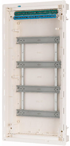 Unterputz-Kleinverteiler KLV der zweiten Generation, Schutzklasse II, Kunststoff-Kapselung mit Stahlblechtür, Frontabdeckung plombierbar und laserbeschriftet entsprechend IEC/EN 60670-24, plus 2 Teilungseinheiten Reserve je Reihe, Markierungsschlitze im Mauerkasten, einzigartiges superflaches Türrahmendesign, stabiler Türdrehriegel optional austauschbar durch Sicherheitsschließung, Kabelhalter für aufgeräumte Verdrahtung, optional in Projekte-Lieferform verfügbar, optional Tür mit Rahmen in RAL-Wunschfarbe, umfangreiches Zubehörsortiment, Lieferumfang: Gehäuse, Geräteträger, Frontabdeckung, Null- und Schutzleiterklemmen mit SK Schraubtechnik, Libelle zum Ausrichten, 3D-Putzausgleich mit bis zu 18mm Tiefenausgleich, Kabelhalter, Nagellaschen, Montageanleitung, Beschriftungsbogen, praxisgerechte Spezialverpackung. Normen: Entsprechend IEC/EN 60670-24, DIN 43871, IEC/EN 62208 und somit für Verteilungen nach IEC/EN 61439-3 freigegeben.