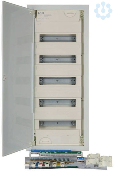 Unterputz-Kleinverteiler KLV, Schutzklasse II, Kunststoff-Kapselung mit Stahlblechtür, Frontabdeckung plombierbar und laserbeschriftet entsprechend IEC/EN 60670-24, plus 2 Teilungseinheiten Reserve je Reihe, Markierungsschlitze im Mauerkasten, einzigartiges superflaches Türrahmendesign, stabiler Türdrehriegel optional austauschbar durch Sicherheitsschließung, Kabelhalter für aufgeräumte Verdrahtung, umfangreiches Zubehörsortiment, Lieferumfang: Gehäuse, Geräteträger, Frontabdeckung, Null- und Schutzleiterklemmen mit SK Schraubtechnik, Libelle zum Ausrichten, 3D-Putzausgleich mit bis zu 18mm Tiefenausgleich, Kabelhalter, Nagellaschen, Montageanleitung, Beschriftungsbogen, praxisgerechte Spezialverpackung. Normen: Entsprechend IEC/EN 60670-24 (PD), IEC/EN 62208 und somit für Verteilungen nach IEC/EN 61439-3 freigegeben.