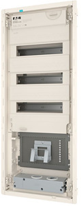 Unterputz-Kleinverteiler KLV Hybrid, Schutzklasse II, Kunststoff-Kapselung mit Stahlblechtür, Frontabdeckung plombierbar und laserbeschriftet entsprechend IEC/EN 60670-24, plus 2 Teilungseinheiten Reserve je Reihe, Markierungsschlitze im Mauerkasten, flaches Türrahmendesign, stabiler Türdrehriegel optional austauschbar durch Sicherheitsschließung, Kabelhalter für aufgeräumte Verdrahtung, umfangreiches Zubehörsortiment, Lieferumfang: Gehäuse, Geräteträger, Frontabdeckung, Null- und Schutzleiterklemmen mit KSK Steck-Klemmtechnik, Libelle zum Ausrichten, 3D-Putzausgleich mit bis zu 18mm Tiefenausgleich, Montageplatte, Gerätehalter, 1-fach Steckdise, Kabelhalter, Nagellaschen, Montageanleitung, Beschriftungsbogen, praxisgerechte Spezialverpackung. Normen: Entsprechend IEC/EN 60670-24, IEC/EN 62208 und somit für Verteilungen nach IEC/EN 61439-3 freigegeben. Zur Erlangung der SKII müssen alle Geräte auf der Montageplatte in schutzisolierter Ausführung eingebaut sein.