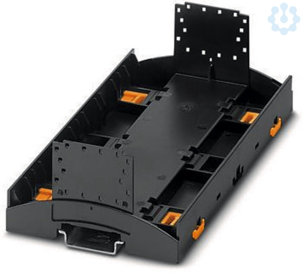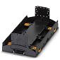 Tragschienengehäuse für den Einsatz in Installationsverteilern nach DIN 43880, Gehäuseunterteil mit Fußriegel, Breite: 161,6 mm, Höhe: 89,7 mm, Tiefe: 48,9 mm, Farbe: schwarz (9005), Querverbindung: Tragschienen-Busverbinder (optional), Polzahl Querverbinder: 16