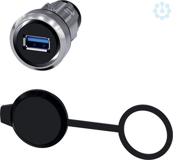 USB Anschluss, 22 mm, Metall hochglanz, silber USB-Anschluss als Zubehör für SIRIUS ACT Befehls- und Meldegeräte.Unter dem Markennamen SIRIUS ACT bietet Siemens ein einzigartiges Portfolio an Befehls- und Meldegeräten mit weltweiten Produkt-Zulassungen in vier modernen Designreihen aus robustem Echtmetall und hochwertigem Kunststoff.Das innovative Aufschnappkonzept vereinfacht die Montage so weit, dass dafür nur eine Hand und kein Spezialwerkzeug erforderlich ist. Als Montagebohrungen genügen nutfreie Löcher, da bereits ein 100%iger Verdrehschutz integriert ist.Dank der durchgängig hohen Schutzart sind die robusten Geräte industrietauglich und für den Außeneinsatz geeignet. Sogar die Reinigung mit Hochdruckstrahl ist möglich. Weder Staub, Öle noch aggressive Laugen können den zuverlässigen Betrieb stören.Neben der Standardverdrahtung können die Geräte auch über PROFINET, AS-Interface oder IO-Link an die Steuerung angebunden werden. Damit reduzieren Sie Ihren Verdrahtungsaufwand, minimieren Fehlerquellen und g