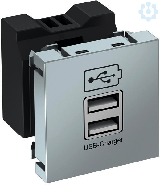 USB-Ladegerät mit zwei USB Typ A Buchsen, für das Aufladen von 1-2 mobilen Geräten, maximaler Ladestrom 1x 1200 mA oder 2x 600 mA. Zur Installation in Geräteeinbaukanälen Rapid 45, Geräteeinbaukanälen Rapid 80, Installationssäulen und Unterflur-Systemen.