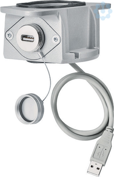 USB-Schnittstelle für PRO Geräte, Leitung und Stecker, USB-2.0 Typ A. IP65 Schutzart bei geschlossener Schutzkappe. Wird durch Deckel auf der Seite des Basisadapters integriert. Zubehör für SIMATIC HMI