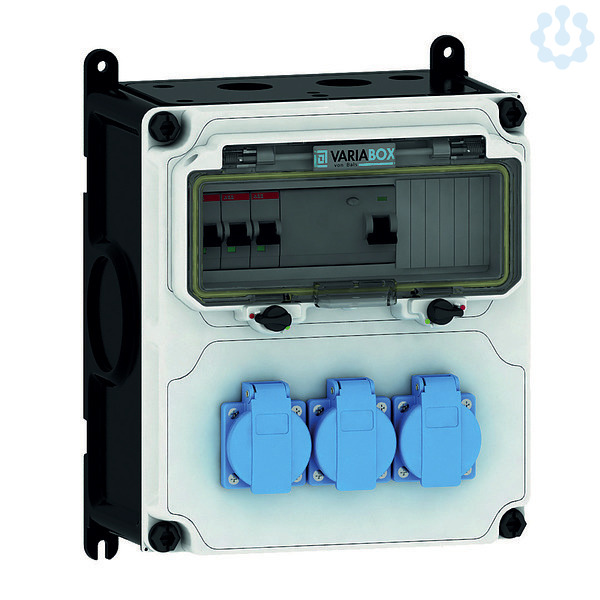 Bestückung: 3 x Schutzkontaktsteckdose 16A 230V IP54 blau,