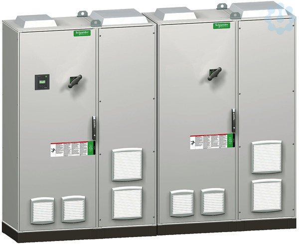 Betriebsfertige Kompensationsanlage 400 V / 50 Hz. Reihenresonanzfrequenz 210 Hz - Verdrosselungsfaktor 5,67%. Maximal zulässiger Überstrom 1,31 In bei verschmutztem Netz, Bemessungsstrom 8kV, Doppelte Regelung über Thermostat und Regler. Abmessung (HxBxT) 2200 x 2800 x 600 (mm), 1904kg. Leistung 900, Anz. elektrischer Stufen 18, Anz. physischer Stufen 10, Regelung 50 + 50 + 8x100. Isolationsspannung 800V ab 225 kvar, Empfohlener einspeiseseitiger Schutz NS800H+NS1000H, Bemessungskurzzeitstromfestigkeit 65 kA/1s. Anschluss unten, Schütze Baureihe TeSys. Schutzart IP31, Sicherungsschutz Typ gG, Normen IEC 61921, 61439-1/2, Umweltzulassung RoHS-Konformität, in Anlagen mit Zulassung gemäß 14001 hergestellt, Produktumweltprofil verfügbar. Hilsfstromversorgung Transformatior 400/230 V ab 50kvar im lieferumfang enthalten, Alarmkontakt erhältlich für fernbetätigtes Warnsignal. Stromwandler nicht enthalten Einbau vor der Last und der Kompensationsanlage, Aggregatkontakt muss an den Generator angeschlossen werden. Far