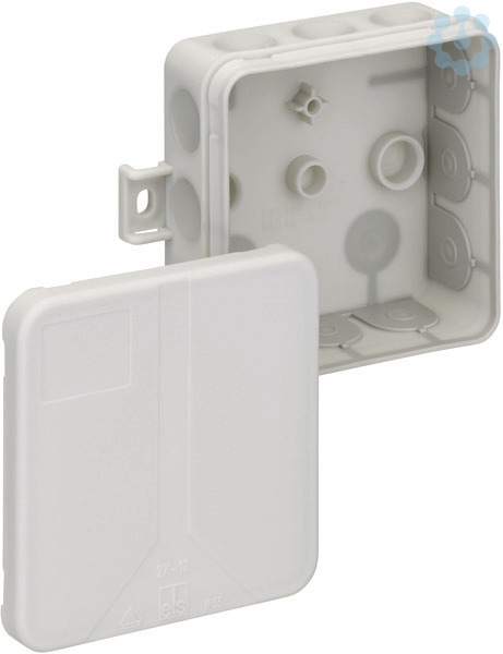 Verbindungsdose nach DIN EN 60670 (VDE 0606), 12 Einführungen, 2 Bodeneinführungen, mit selbstdichtenden, weichen Einführungsmembranen, Werkzeug zum Öffnen der Leitungseinführung nicht erforderlich, Dichtbereich 2-14mm, mit außenliegenden Befestigungsstellen, grau, ohne Klemmen, für VDE-zugel. Einzelklemmen