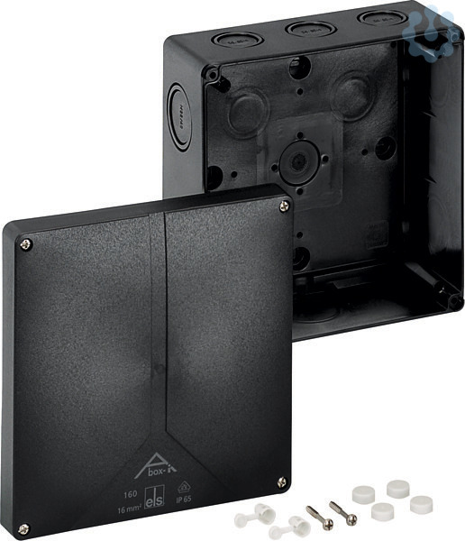 Verbindungsdose, Industrie Qualität nach DIN EN 60670 (VDE 0606), Ui=690V, witterungsbeständig, schlagfest, halogenfrei, mit Plombierset, passende Kabeleinführungen siehe Zubehör, schwarz, ohne Klemmen