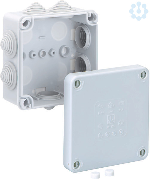 Verbindungsdose nach DIN EN 60670 (VDE 0606), Ui=690V, 7 eingedrückte Stufennippel, Dichtbereich 5-21mm, für Klemmen bis 10qmm, grau, ohne Klemmen
