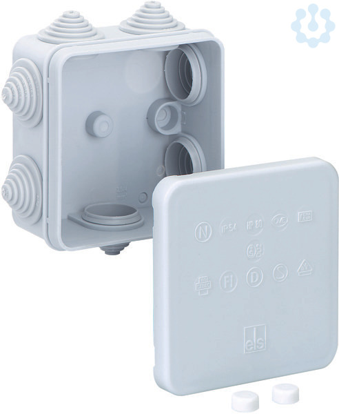 Verbindungsdose nach DIN EN 60670 (VDE 0606), 7 eingedrückte Stufennippel, Dichtbereich 5-16mm, für Klemmen bis 2,5qmm, grau, ohne Klemmen