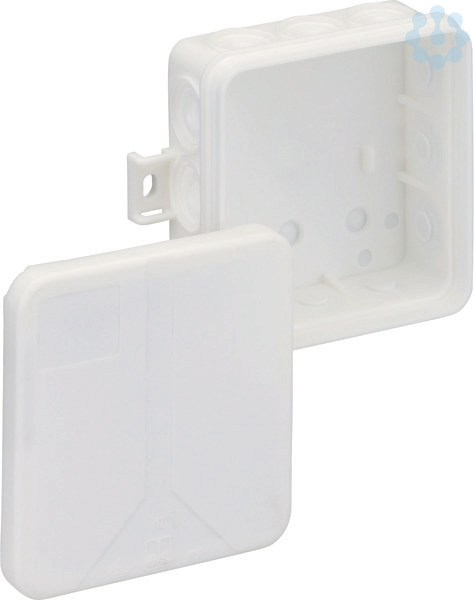 Verbindungsdose nach DIN EN 60670 (VDE 0606), 12 Einführungen, 3 Bodeneinführungen, komplett mit Lochwerkzeug und Verschlussstopfen, mit außenliegenden Befestigungsstellen, weiß, ohne Klemmen, für VDE-zugel. Einzelklemmen