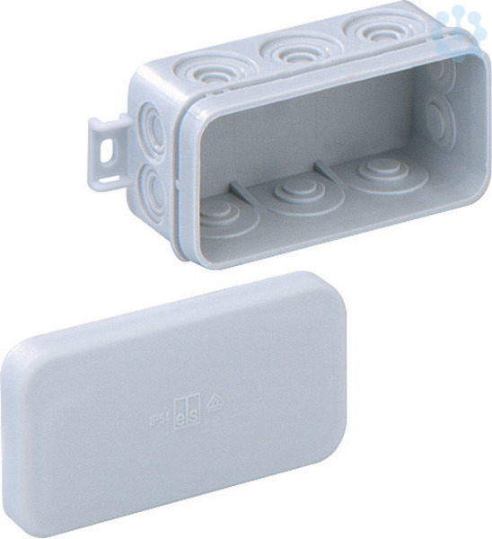 Verbindungsdose nach DIN EN 60670 (VDE 0606), 10 Einführungen, 2 Bodeneinführungen, geeignet für beengte Installationsumgebungen wie abgehängte Decken und Kabelkanäle, komplett mit Lochwerkzeug und Verschlussstopfen, mit außenliegenden Befestigungsstellen, grau, ohne Klemmen, für VDE-zugel. Einzelklemmen