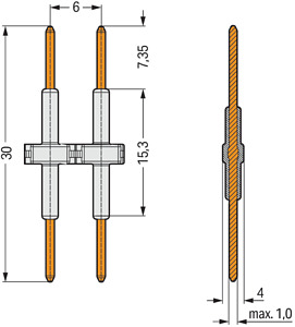 Verbindungselement. Rastermaß 6 mm. 2-polig. Länge 30 mm. weiß