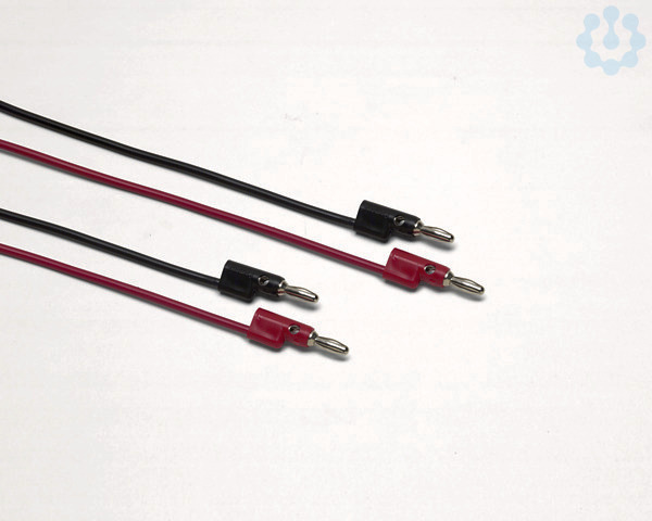 1 Paar Anschlusskabel (rot, schwarz) für stapelbare 4-mm-Bananenstecker. Vernickelte Bananenstecker, 61 cm lange PVC-isolierte Leitungen, 30 V eff. oder 60 V DC, 15 A