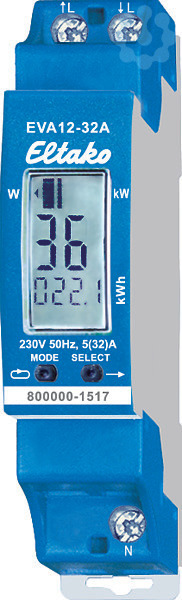 Energieverbrauchsanzeige mit Display - smart metering für Tragschiene. Stand-by-Verlust nur 0.5 Watt. Die Energieverbrauchsanzeige misst die Wirkenergie wie ein Wechselstromzähler anhand des zwischen dem Eingang und Ausgang fließenden Stromes und speichert den Verbrauch in nichtflüchtige Speicher. Wie alle Zähler ohne MID-Konformitätserklärung in Europa nicht für die monetäre Stromabrechnung zugelassen. Die Genauigkeit entspricht wie bei allen Eltako-Wechselstromzählern der Klasse B bei MID (1%), der Anlaufstrom ist 20mA. Damit reproduziert die Energieverbrauchsanzeige genau die Messung des an anderer Stelle des Gebäudes installierten Zählers für die Stromabrechnung. Das Anzeigedisplay ist in 3 Felder aufgeteilt. Totalreset: Um das Speichern der Werte stundengenau zu beginnen, empfiehlt sich ein Totalreset zu einem günstigen Zeitpunkt nach der Installation. Hierzu die Tasten MODE und SELECT gleichzeitig 5 Sekunden gedrückt halten, bis RES im Feld 1 erscheint. Wird nun SELECT kurz gedrückt, werden alle Speiche