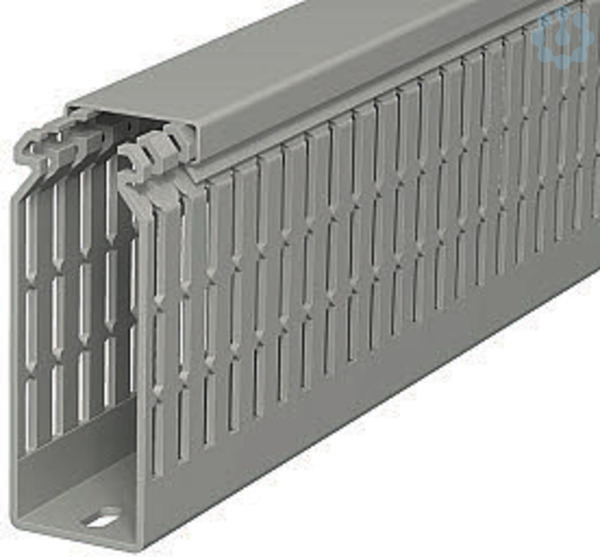Geschlitzter PVC Kanal mit Oberteil zur horizontalen und vertikalen Verlegung im Schaltschrank. Verjüngungen in den Seitenschlitzen verhindern das Herausfallen der Leitungen. Bei Verdrahtungskanälen der Serien LKV und LKV/N entspricht das Nennmaß der Type den äusseren Abmessungen des Kanals.