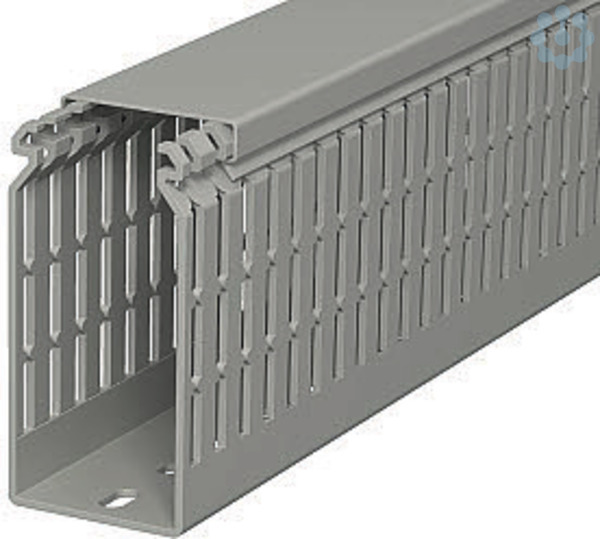 Geschlitzter PVC Kanal mit Oberteil zur horizontalen und vertikalen Verlegung im Schaltschrank. Verjüngungen in den Seitenschlitzen verhindern das Herausfallen der Leitungen. Bei Verdrahtungskanälen der Serien LKV und LKV/N entspricht das Nennmaß der Type den äusseren Abmessungen des Kanals.