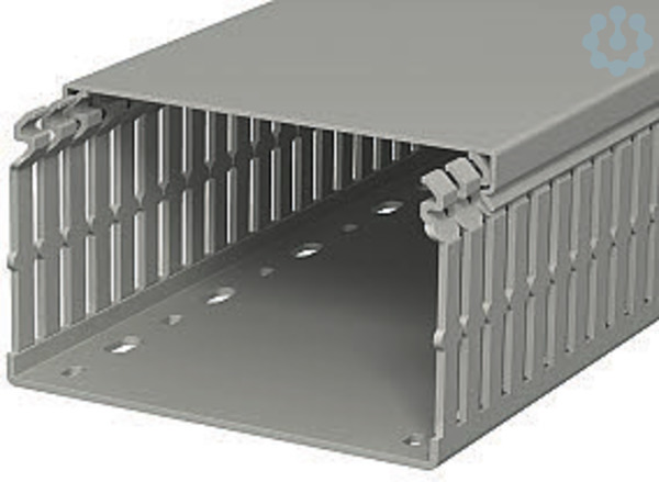 Geschlitzter PVC Kanal mit Oberteil zur horizontalen und vertikalen Verlegung im Schaltschrank. Verjüngungen in den Seitenschlitzen verhindern das Herausfallen der Leitungen. Bei Verdrahtungskanälen der Serien LKV und LKV/N entspricht das Nennmaß der Type den äusseren Abmessungen des Kanals.