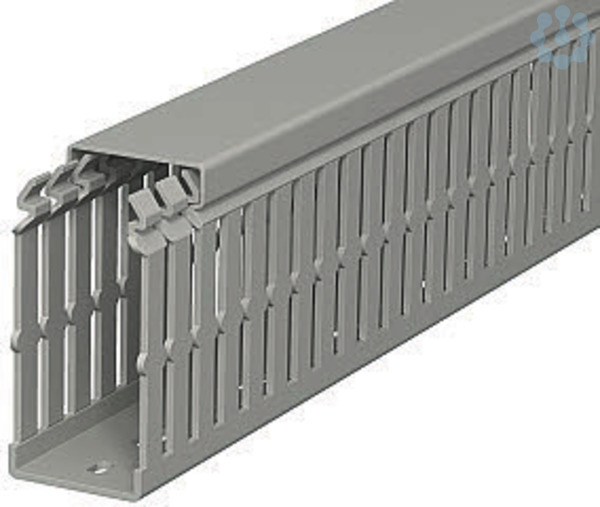 Geschlitzter PVC Kanal mit Oberteil zur horizontalen und vertikalen Verlegung im Schaltschrank. Verjüngungen in den Seitenschlitzen verhindern das Herausfallen der Leitungen. Bei Verdrahtungskanälen der Serien LKV und LKV/N entspricht das Nennmaß der Type den äusseren Abmessungen des Kanals.