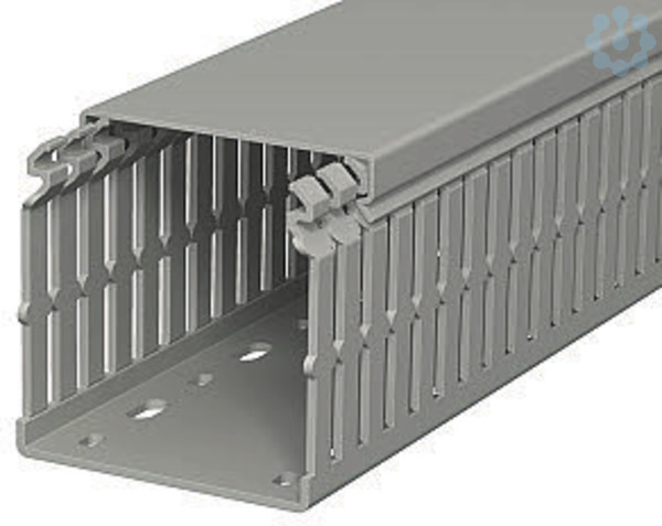 Geschlitzter PVC Kanal mit Oberteil zur horizontalen und vertikalen Verlegung im Schaltschrank. Verjüngungen in den Seitenschlitzen verhindern das Herausfallen der Leitungen. Bei Verdrahtungskanälen der Serien LKV und LKV/N entspricht das Nennmaß der Type den äusseren Abmessungen des Kanals.