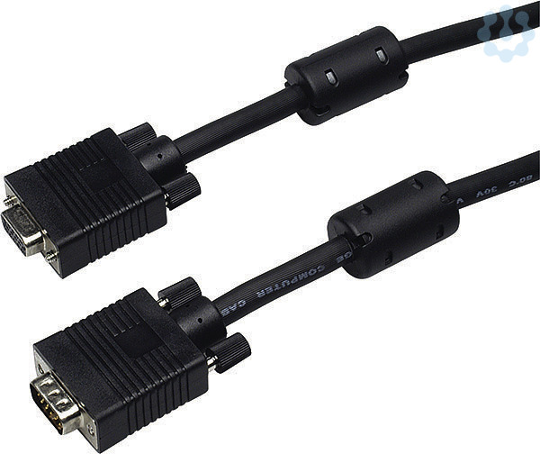 Verlängerungskabel VGA Sub D 15-polig. Länge: 3,0m. Farbe schwarz. Seite 1: Stecker 15-pol. Seite 2: Stecker 15-pol. Verpackt im Polybeutel