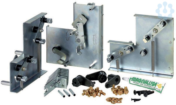 Zusatzausrüstung, Mechanische Verriegelung, Festeinbau, Typ 33, für 3 Leistungsschalter gleicher oder unterschiedlicher Baugröße: Verriegelung: A, C gegen B.