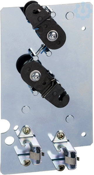 Masterpact Verriegelung 2 oder mehr Geräte Festeinbau. Verriegelung mit Hilfe Kabel (Bowdenzug) für 2 MTZ1. Für diese Funktion sind erforderlich. Eine Adapterbefestigung auf der rechten Seite jedes Leistungsschalters oder Lasttrennschalters. Ein Satz Kabel ohne rutschfeste Anordnung. Ein mechanischer Schaltspielzähler CDM (vorgeschrieben). Der maximale Abstand zwischen den Befestigungsebenen (senkrecht oder waagerecht) beträgt 2000 mm.
