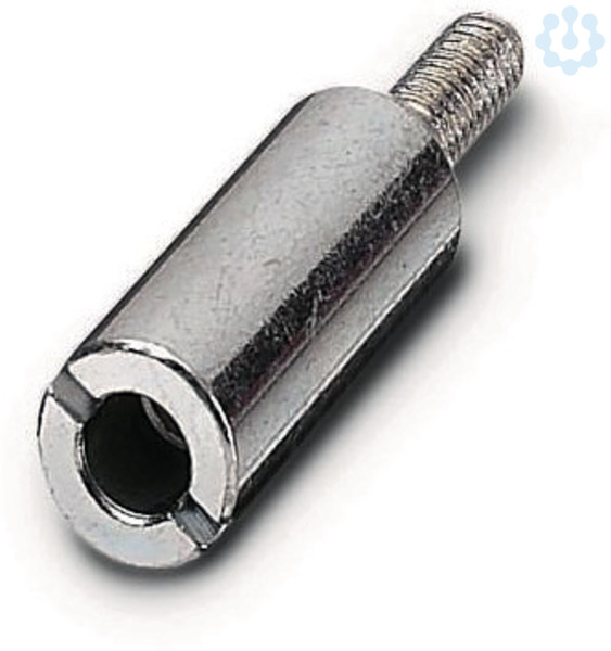Verriegelungsschraubhülse, zur festen Verbindung von Kontakteinsätzen und schienenmontablen Klemmenadaptern
