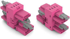 3-fach-Verteiler. 4-polig. Kod. B. 1 Eingang. 3 Ausgänge. pink
