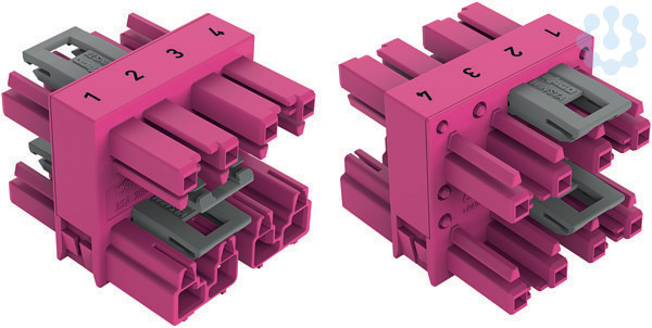 3-fach-Verteiler. 4-polig. Kod. B. 1 Eingang. 3 Ausgänge. pink