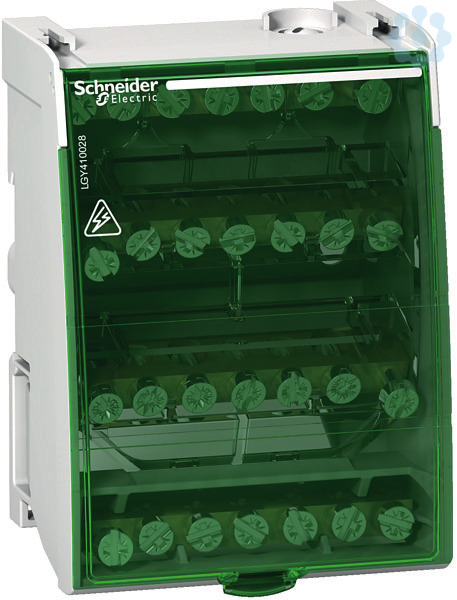 Klemmenblock Lynergy Prisma G. 4-polig, Nennstrom 100A, Betriebsspannung 230V AC (Ph/N) / 440V AC (Ph/Ph), Isolationsspannung (Ui) 500V AC, Gesamtanschlusskapazität- 4 x 7 Stück. Verteilerblock, der auf einer standardmäßigen DIN-Schiene oder einer Montageplatte montiert werden kann, wodurch die Spannungsversorgung für Haupteinspeisungen vereinfacht wird. Einspeisungen und Abgänge werden an Schraubklemmen angeschlossen, die starre oder flexible Kabel mit Aderendhülse aufnehmen können. Kompatibel mit Schaltschränken der Serien Prisma G und P, Pragma, Mini Pragma und Resbo. Optional- zusätzliche Klemmenleiste für Neutralleiter für vierpoligen Verteilerblock. Der Klemmenblock Lynergy erfüllt folgende Normen- IEC/EN 60947-7-1, IEC/EN 61439-1 & 2.