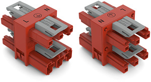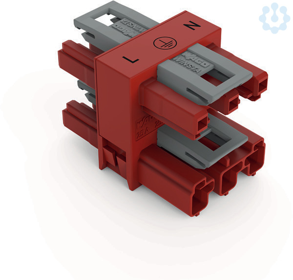 3-fach-Verteiler. 3-polig. Kod. P. 1 Eingang. 3 Ausgänge. 2 Verriegelungsklinken. rot