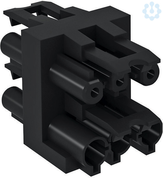 Verteilerblock mit Verriegelung, Typ GST18i, 1 Eingang mit Steckerteil 3-polig und 3 Ausgänge mit Buchsenteil 3-polig.