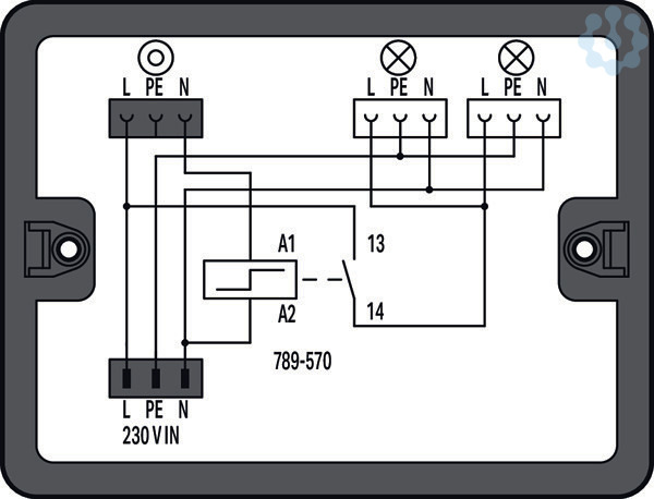 Verteilerbox. Stromstoßschaltung. 2 Eingänge. 2 Ausgänge. Kod. A. MIDI. schwarz