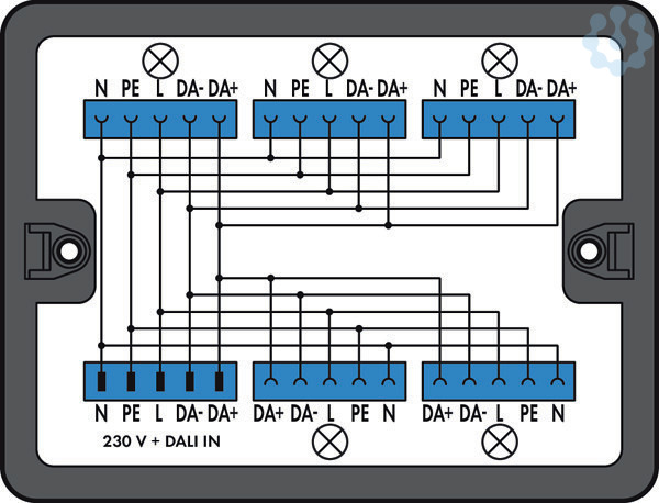 Verteilerbox. DALI. 1 Eingang. 5 Ausgänge. Kod. I. MIDI. schwarz