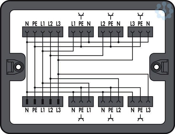 Verteilerbox. Dreh- auf Wechselstrom (400 V/230 V). 1 Eingang. 7 Ausgänge. Kod. A. MIDI. schwarz