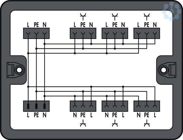 Verteilerbox. Wechselstrom (230 V). 1 Eingang. 7 Ausgänge. Kod. A. MIDI. schwarz