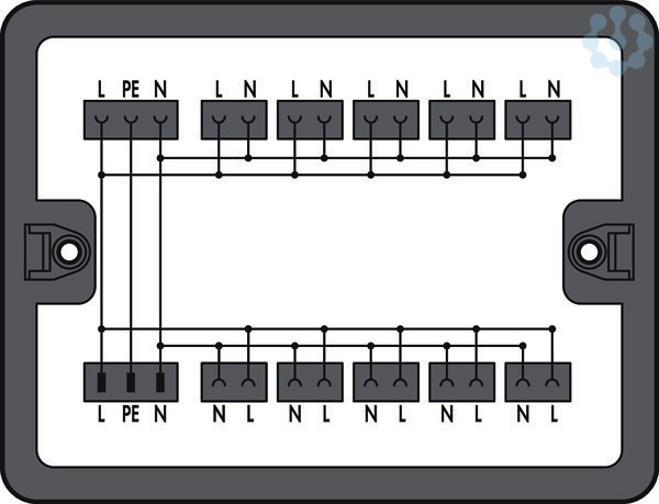 Verteilerbox. Wechselstrom (230 V). 1 Eingang. 11 Ausgänge. Kod. A. MIDI. schwarz