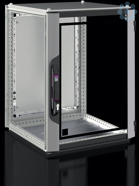 VX IT Netzwerk-/Serverschrank, Leerschrank, BHT: 600x800x600 mm, IP 55, Aluminium-Sichttür geschlossen vorne, 180°-Scharniere, Stahlblechtür geschlossen hinten, 130°-Scharniere, Komfortgriffe für Profilhalbzylinder