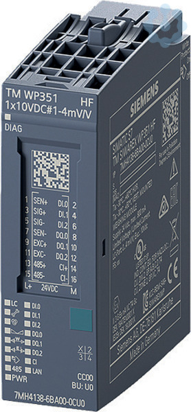 SIMATIC ET 200SP, TM SIWAREX WP351 HF, eichfähige Wägebaugruppe für automatische Dosier-, Abfüll-, Kontroll,- und Totalisierwaagen, 3x DI, 3xDQ, 1xCI,1xRS485, 1xEthernet, 1x LC (1-4mV/V)