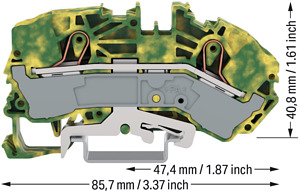 2-Leiter-Schutzleiterklemme. 16 mm². seitliche und mittige Beschriftung. für Tragschiene 35 x 15 und 35 x 7,5. Push-in CAGE CLAMP®. 16,00 mm². grün-gelb